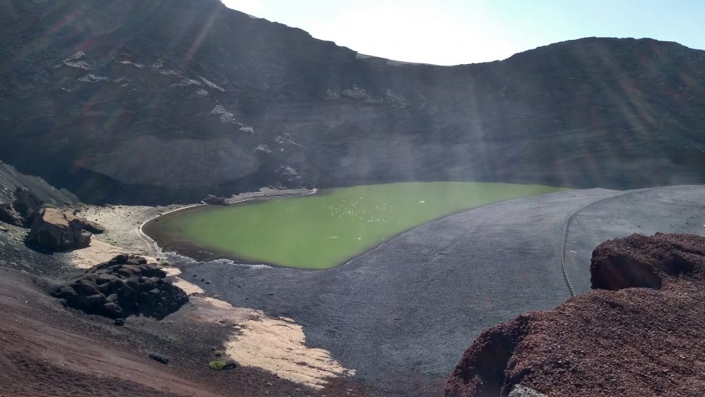 The green color is caused by the algae that live in the salt water. The lake is continuously refilled with seawater underground. You can’t get close to the lake but it is quite spectacular from the viewing platform. There is a walking trail that will take you there.