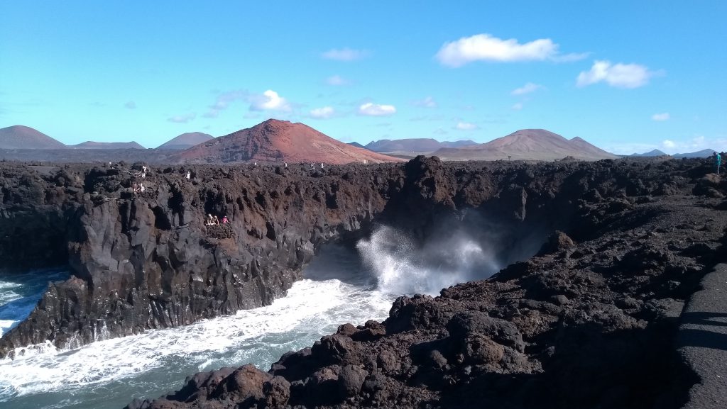It is especially impressive because you can see and hear the power of the water here. While the water splashes up, you have to be careful not to get wet. The sea can be quite turbulent but this makes a visit to Los Hervideros even more spectacular.